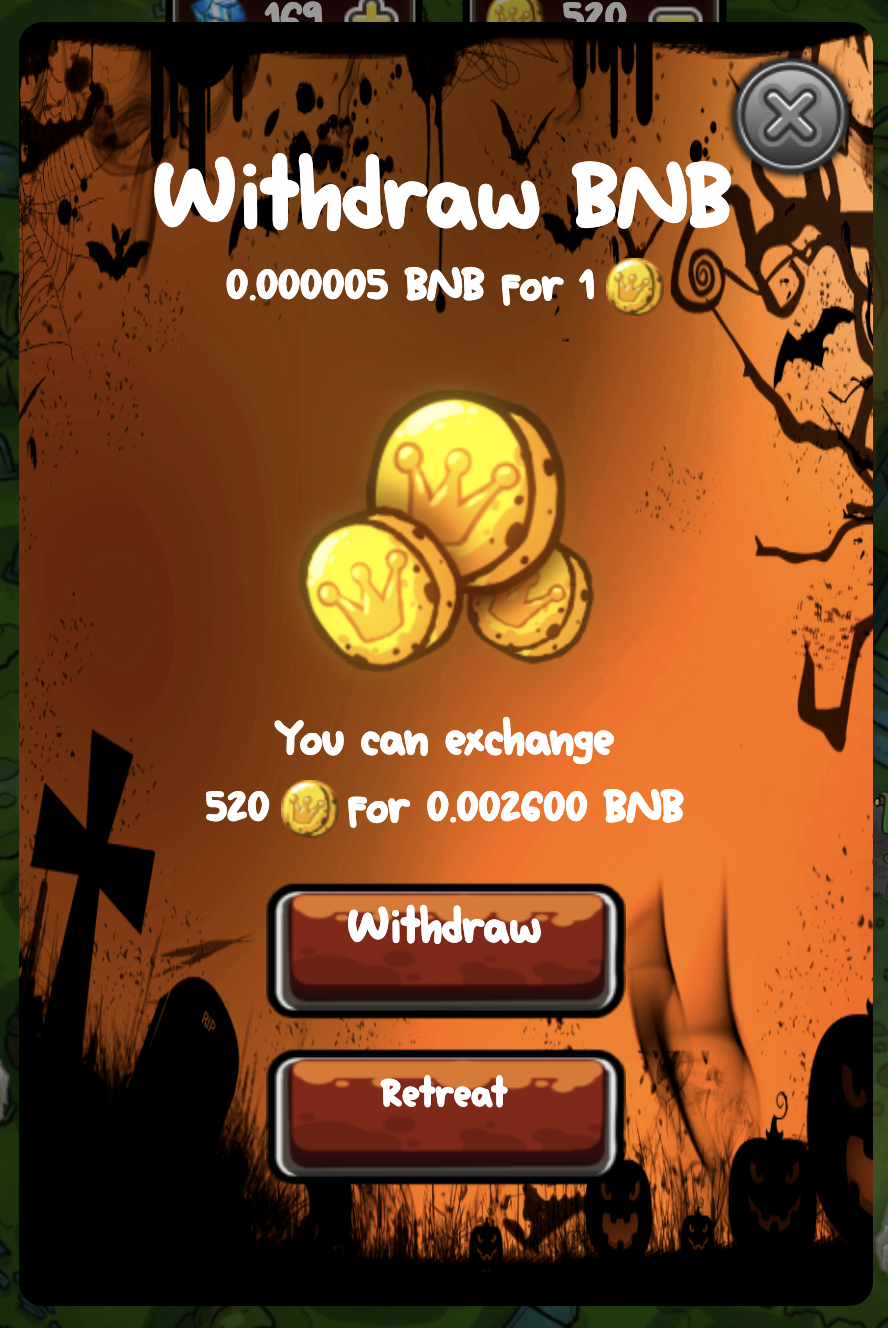 DevsHalloween Cash is an investment blockchain game where you have to build the defenses of your Kingdom and fight off hordes of enemies, taking their gold for yourself. You can save gold and then exchange it for BNB.