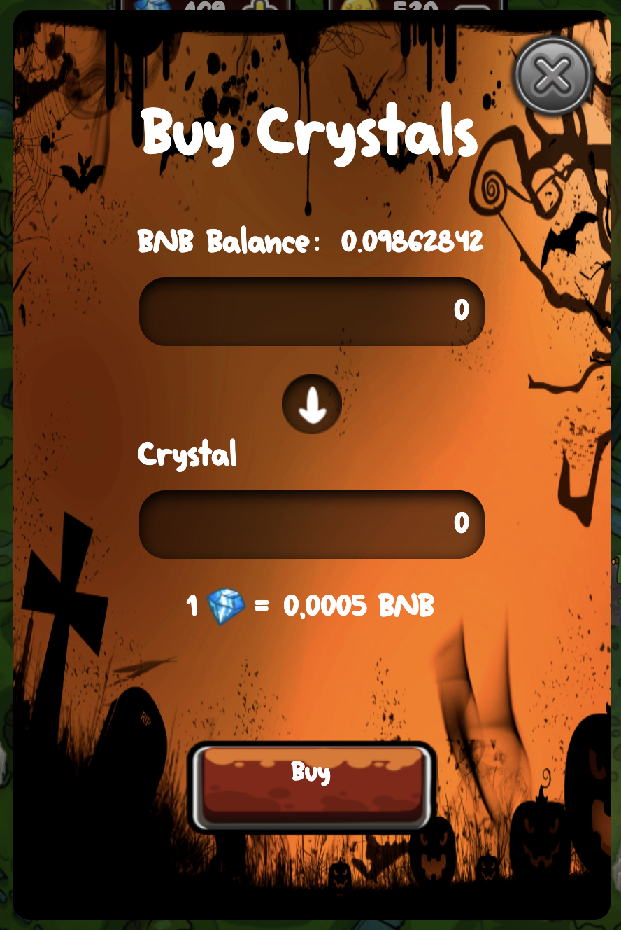 You can buy crystals for BNB, you need them to buy and upgrade the towers.